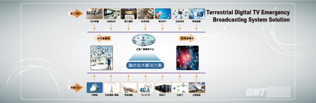 The scheme is a solution that combines terrestrial digital television broadcasting system and emergency broadcasting system. It has the characteristics of collecting, processing and compiling emergency information. By means of DTMB and Internet, the broadcast terminal is controlled to switch to emergency broadcast program, and the public receives emergency information in multimedia mode, such as image, text, sound and so on at any time and place. Meet the audience to receive emergency information accessibility. In accordance with the national emergency related standards, and weather, three prevention, public security departments such as seamless docking, for emergency command information to provide a safe, rapid and accurate distribution channels, improve the government emergency response capability of emergency.