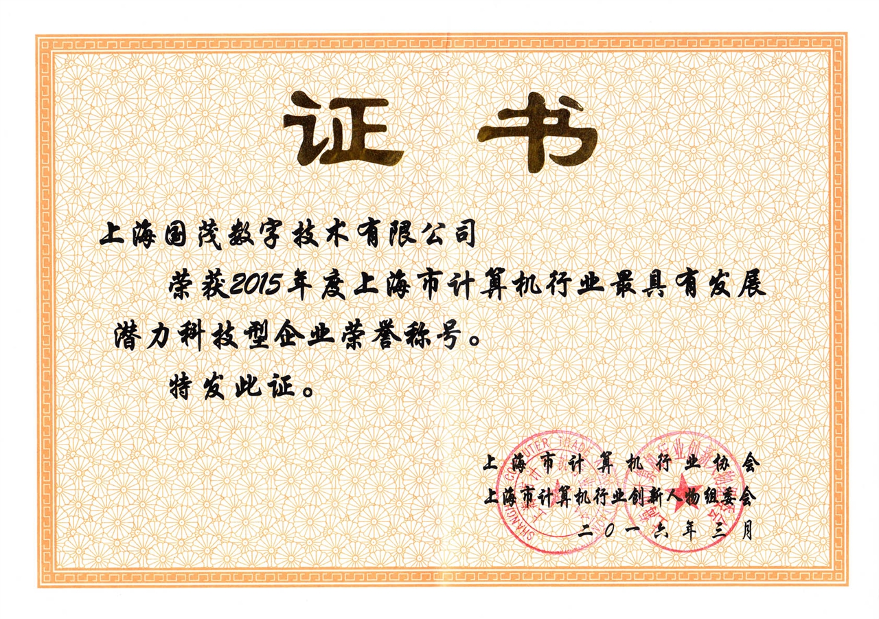 2016年3月25日,上海市計算機(jī)行業(yè)協(xié)會在中科院上海分院舉行了“2015年度上海市計算機(jī)行業(yè)最具發(fā)展?jié)摿萍夹推髽I(yè)暨創(chuàng)新人物”頒獎儀式。
