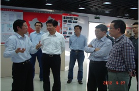 2012年4月27日下午,廣州市科技和信息化局謝學(xué)寧局長、廣州市番禺區(qū)人民政府樓旭逵區(qū)長一行蒞臨上海國茂考察調(diào)研。謝局長、樓區(qū)長一行參觀了上海國茂展覽廳,認(rèn)真聽取了王總對于公司發(fā)展